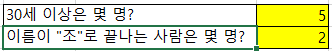 countif 함수를 활용한 간단한 예제를 보았는데요, 다음과 같이 조건이 2개 이상인 경우에는 제 실력으로는 countifs 함수가 필요하였습니다.