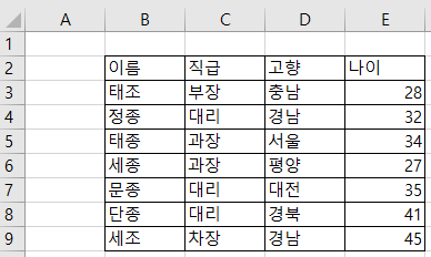 예제1) 30대는 몇 명? 언뜻 Countif() 함수로 쉽게 구할 수 있을거 같지만 막상 해보면 뭔가 부족함을 느낄것입니다. 30대라는 의미가 30~39, 즉 30 이상, 40 미만 두가지 조건을 만족하는 값이기 때문인데요, 해당 문제는 Countifs 함수를 이용하면 쉽게 해결 할 수 있습니다. =countifs(범위1, 조건1, 범위2, 조건2) 위 함수에 그대로 대입하면 범위1, 범위2 는 각각 나이가 있은 E3:E9, 조건1, 조건2는 ">=30", "<40" 즉, =COUNTIFS(E3:E9,">=30",E3:E9,"<40") 다음과 같은 수식이 나오게 됩니다. 정종, 태종, 문종 3명이 30대라 3이 나오네요 |